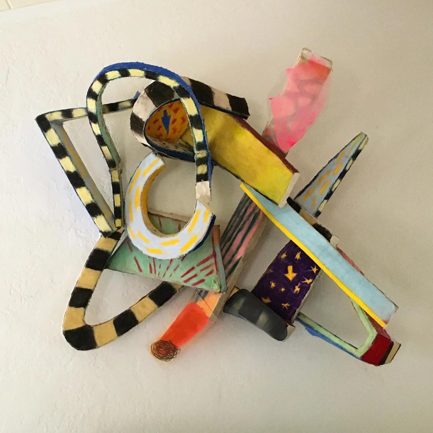These works consist of Styrofoam constructions, upholstered in canvas. The canvas is wet down before applying pastel which melts into the surface like crayon on a hot plate, a highly satisfying experience.