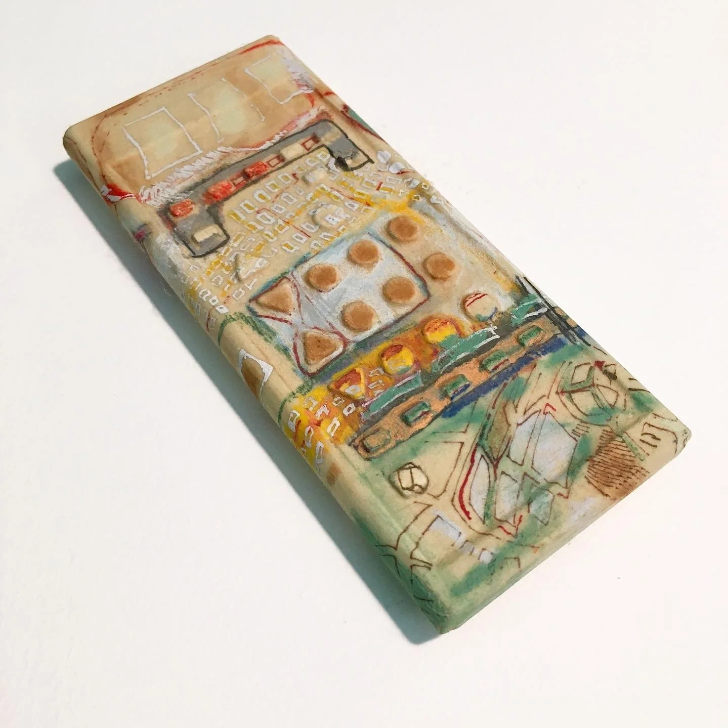 Slide 1 Slide 1 (current slide) Clicker #10Soft pastel and ink on coated found objects2 1/2” x 5 3/4” x 3/4"$175Contact artist to purchase